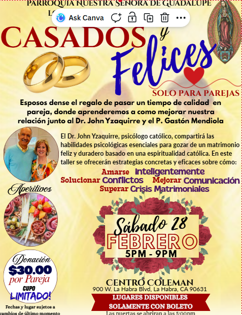 ¡Los boletos se pueden comprar afuera después de las misas o en la Oficina Parroquial!