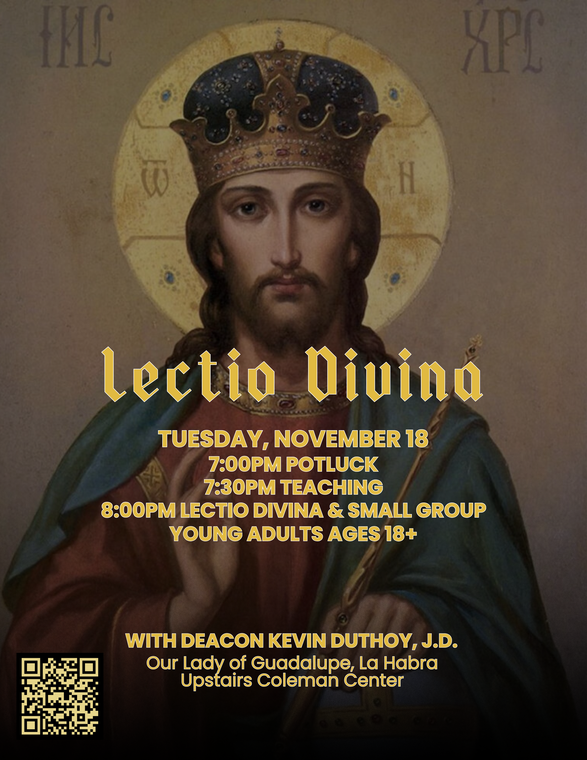Join us in breaking open scripture and discuss the ways in which the Lord calls us to know, love, and serve Him in our state of life. This event is co-ed and all young adults are welcome.